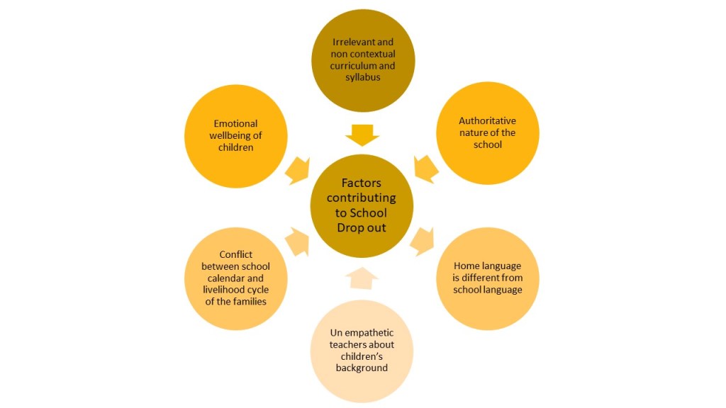 Children from different socio-economic – cultural backgrounds are required to teach by using different teaching methodologies connecting to their lives. Strategies that we use for tribal children will not be useful for children from urban areas. This is the reason why children from Rural, Tribal and Economically weaker backgrounds feel alienated in our universal education system and eventually, they become dropouts.